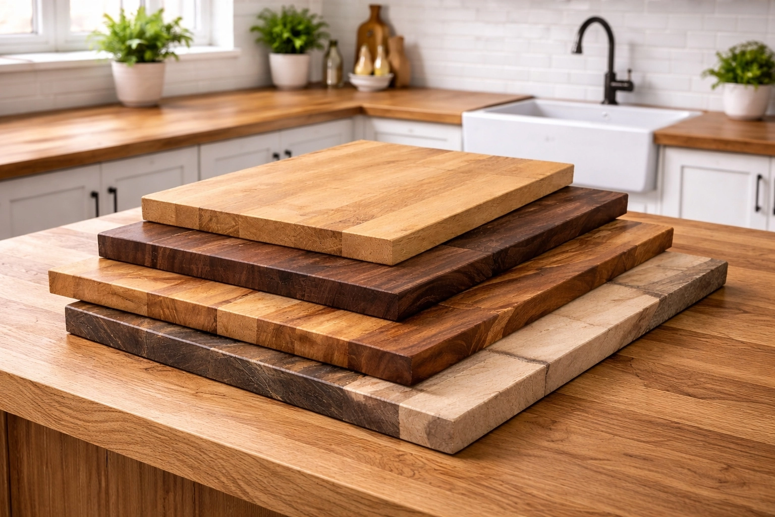La encimera de madera maciza aporta una sensación de calidez y naturalidad difícil de igualar por otros materiales. Es una opción muy apreciada en cocinas de estilo rústico, nórdico o clásico, aunque también puede integrarse en diseños modernos como elemento de contraste.